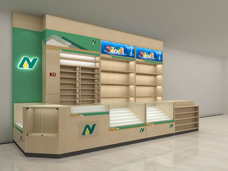 柜臺工藝:五金貨架、木質展柜、烤漆展柜、亞克力展架